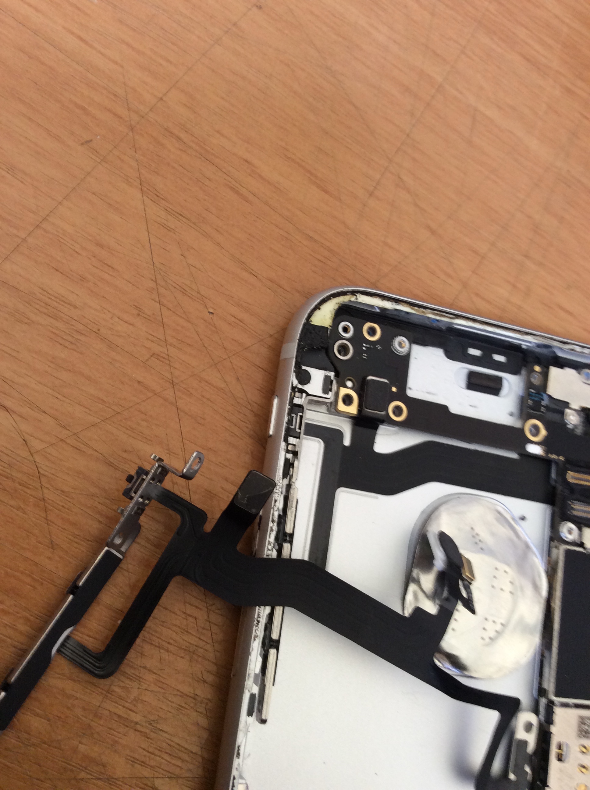 iPhone6sのバイブレータの不具合です!少しな振動で切り替わってしまうのでパワーボタンフレックスケーブルの交換でなおります!